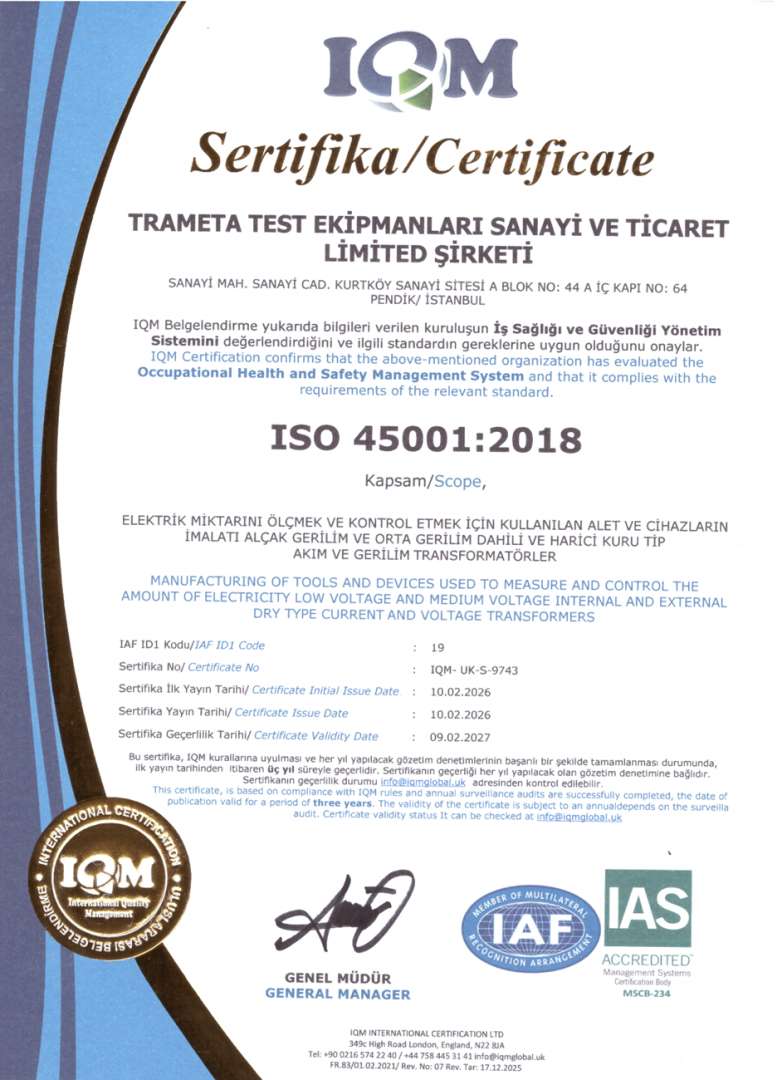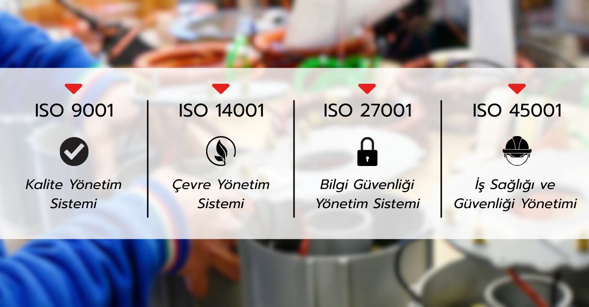 TRAMETA olarak iş süreçlerimizde kalite, çevre, bilgi güvenliği ve iş sağlığı-güvenliği alanlarında uluslararası standartlara uygun sistemler uygulamaktayız. Bu kapsamda sahip olduğumuz yönetim sistemleri: